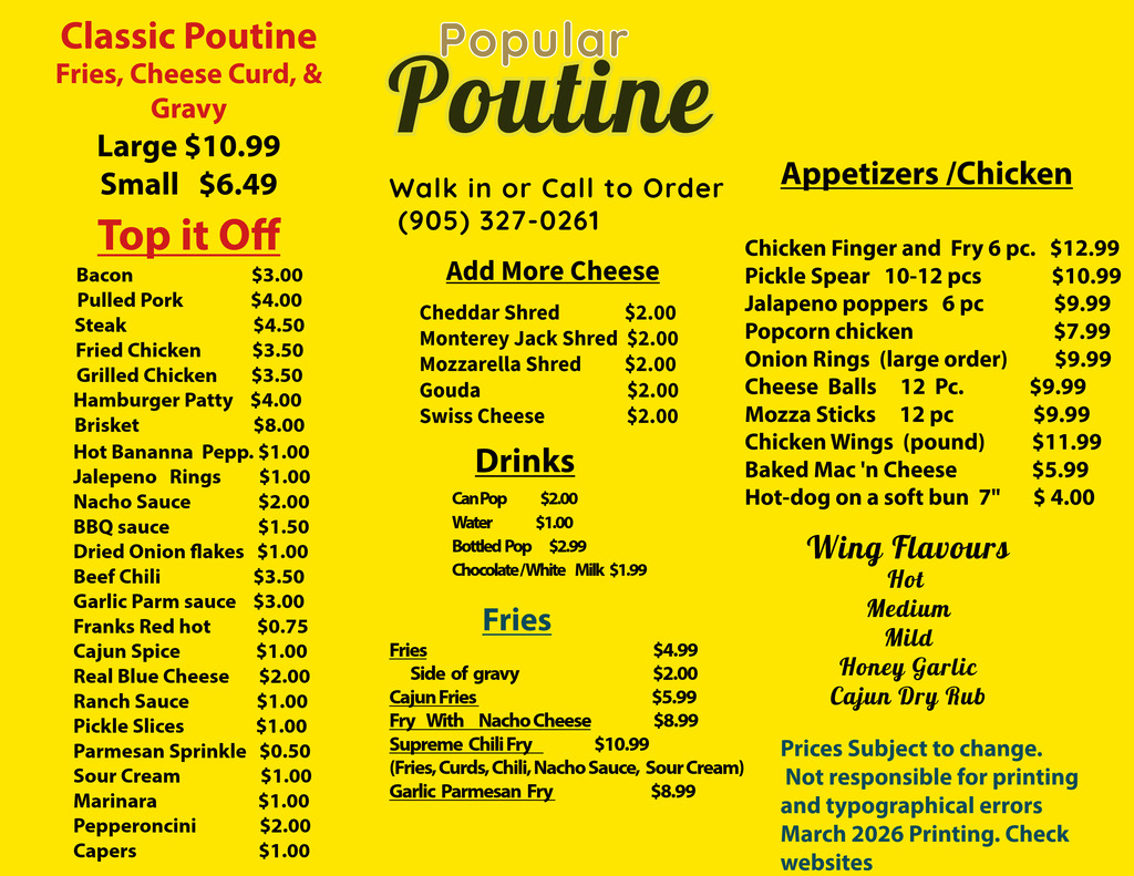 At Popular Poutine, we believe in serving only the freshest ingredients. Our fries are made fresh daily, and our poutine is crafted to perfection. Join us for a taste of this classic Canadian dish, and discover why we are loved by all!
